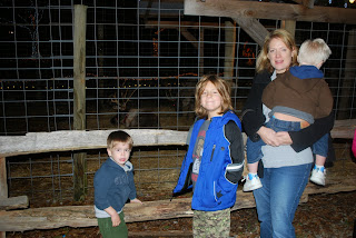 It was cold and muddy (it had rained ALL DAY the day before) but we had fun. Here we're saying hello to the reindeer before they get ready to fly Santa around.